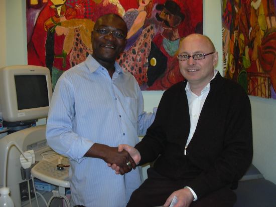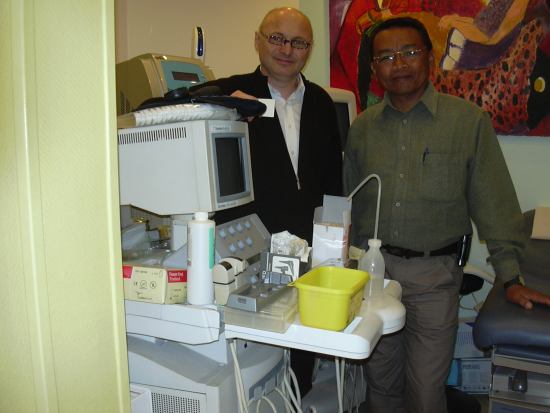 Mr Elie Nirina Rasoloniaina, le Maire de la commune d'Andranonahoatra (Madagascar) séjourne à Paris en France du 05 avril au 15 avril 2010 où il s'est rendu le 5 avril dernier au siège de Coeur De France Monde , à l'invitation de Coeur De France Monde pour une séance de travail avec quelques membres de CDFM. Il a profité de cette rencontre pour découvrir un Scanner échographique Doppler de marque Américaine, offert à CDFM par le Dr Patrick Pamar, membre d'honneur de l'association Coeur de France Monde. Ce Scanner a été sur-le champs transmis à la commune d'Andranonahoatra (Madagascar).