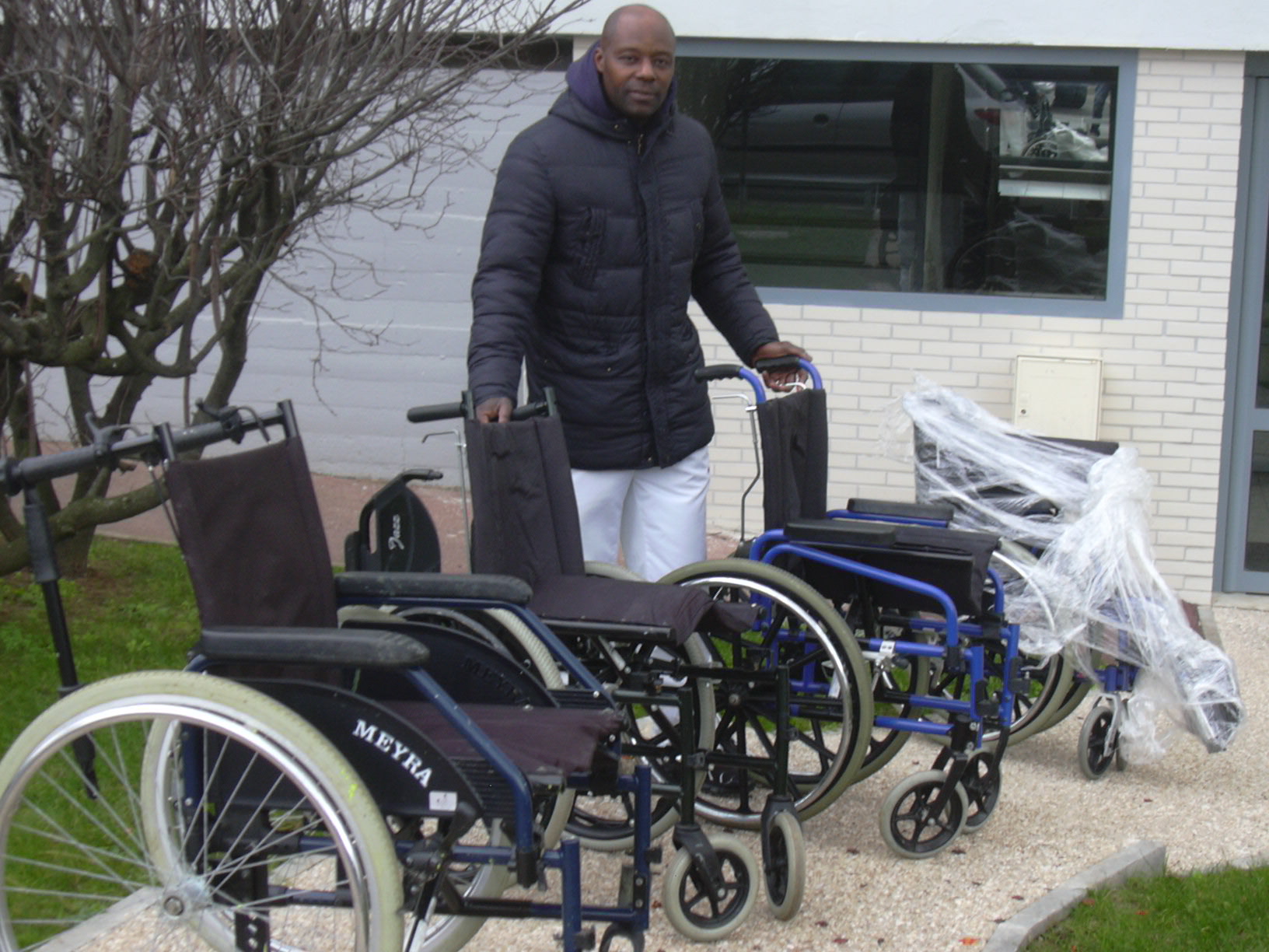 Jean Paul Siroy : Bonjour monsieur et bonne année. Nous avons réservés ses fauteuils pour nos frères handicapés d'Afrique. Actuellement je suis en contact avec deux de nos antennes, la Côte d'Ivoire et Madagascar. Je ne vous cache pas que je suis content et heureux que le Président m'ait confié cette tâche, maintenant je suis sûre et certain que je vais mettre mes pieds en Afrique, moi qui est d'origine Guadeloupénne, c'est un rêve, en plus, dans un cadre humanitaitre.